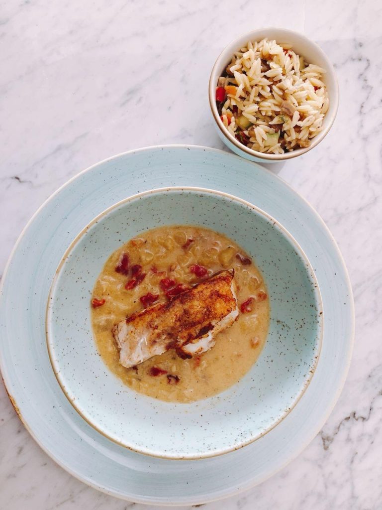 - Agregar el aderezo al Risoni y luego las verduras salteadas. Finalmente la albahaca picada con tijera para evitar que se oxide.